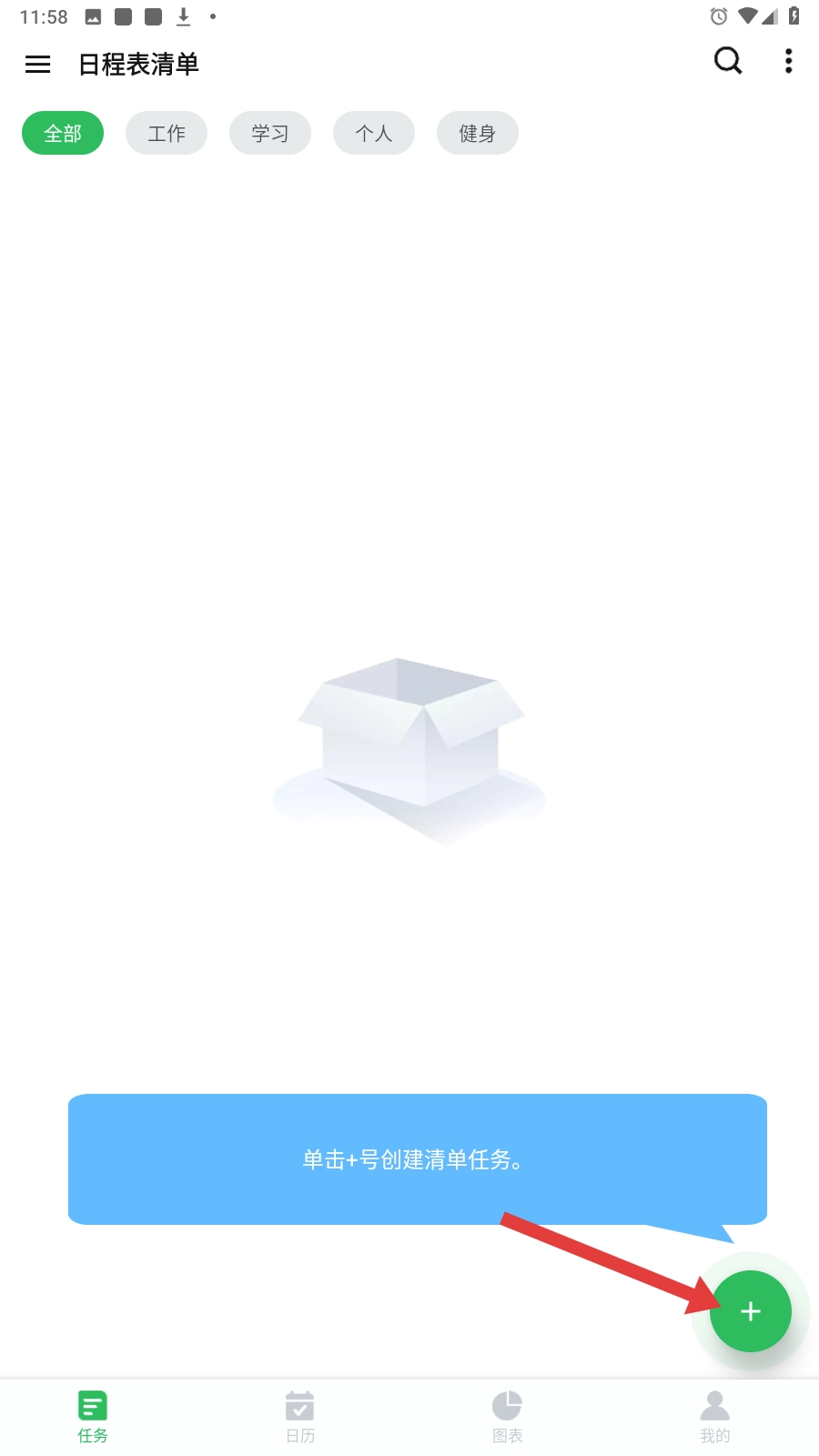 1、在【日程表清单】页,点右下角【+】,开启创建新任务流程,添加日程。