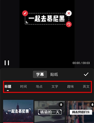 2、之后就会弹出【字幕】和【贴纸】两个选项。