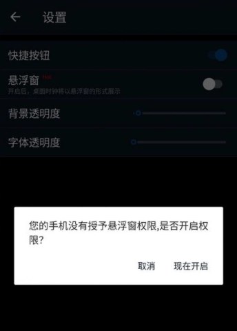 5、开启悬浮窗功能前需先授予权限,点击【现在开启】即可跳转至授权界面
