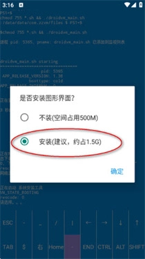 3.接下来会提示安装图形界面,点击【安装】按钮即可,此过程需要1.5G的内存空间。