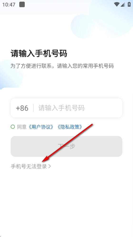 在登录界面点击【手机号无法登录】