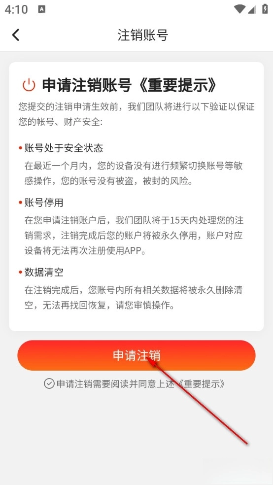 3、然后点击申请注销