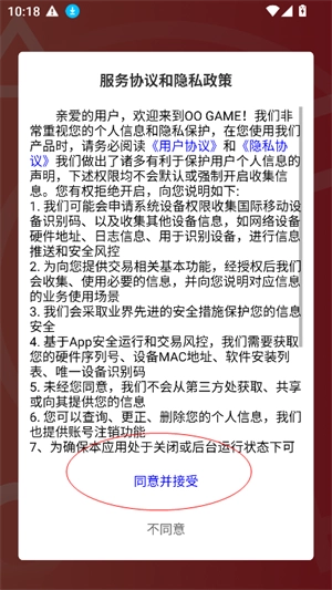 2、然后在弹出的窗口中点击“同意并接受”选项。