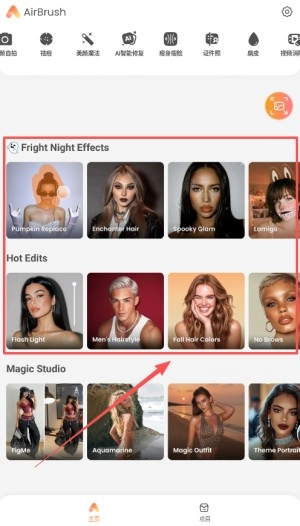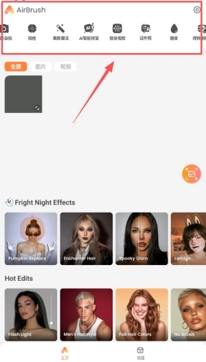 1、打开AirBrush应用,点击“照片美颜”功能入口;若有需要,也可选择现场自拍或导入视频素材,不过本次将以修图操作为例为大家演示。