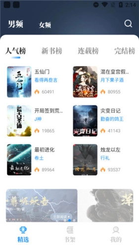 1、软件的首页设置的不同的小说榜单,方便用户可以在榜单里面寻找热门的小说资源,全部都是非常的精彩。