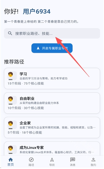 4、可以在搜索框中输入职业发展路径、相关技能等关键词,以此来查找你感兴趣的工作岗位