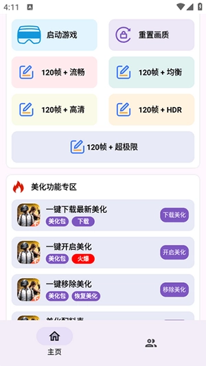 1、聚焦画质优化与皮肤美化这两大核心功能,界面简洁清爽,无多余冗余内容。