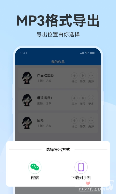一键导出MP3:所有的音频文件都可以直接导出至手机,U盘,离线播放,也可以一键分享给他人