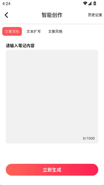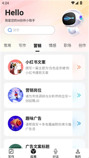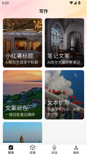2、进入写作页面,提供了文案润色、文本扩写等功能