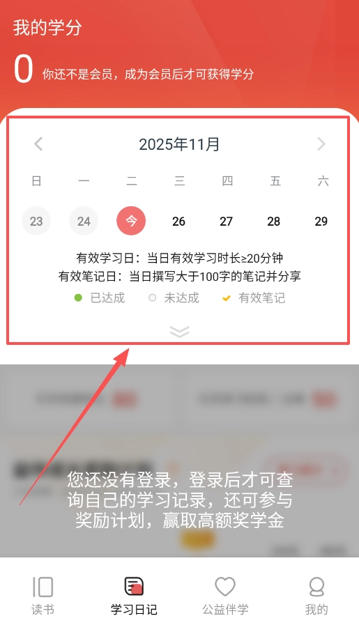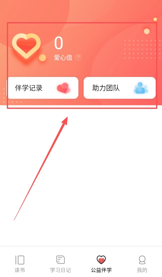 最后别忘记关注公益伴学板块哦,在这里你能查看自己的爱心值和伴学记录,完成读书、写日记这类学习任务,不只能让自己得到提升。