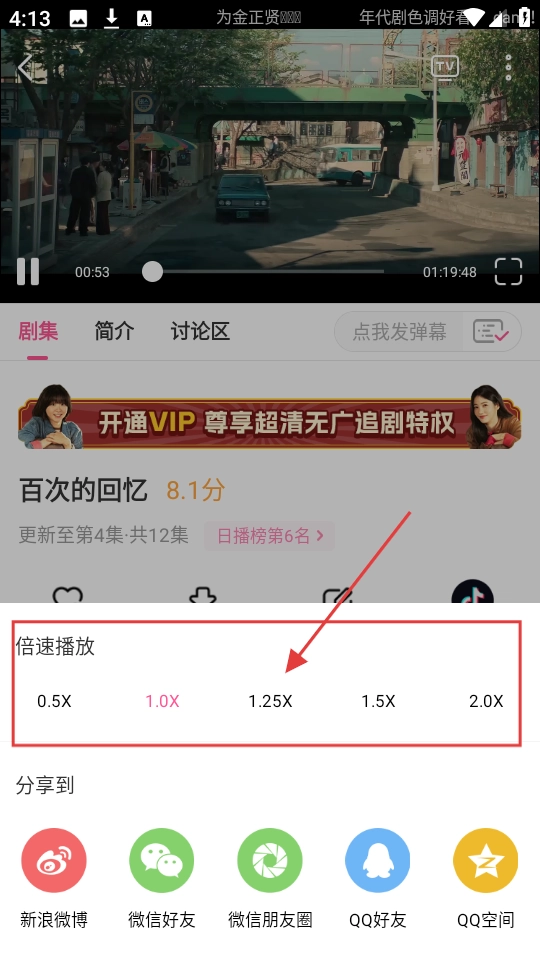 挑选好你心仪的倍速选项,像【1.25X】这样的,只需点击一下,剧集就会按照这个倍速播放,看剧的节奏完全可以由你自己来把控。