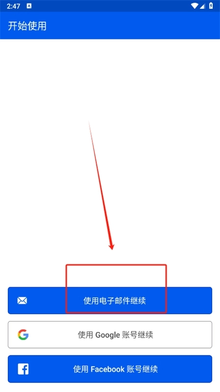 3、然后选择使用电子邮件继续。