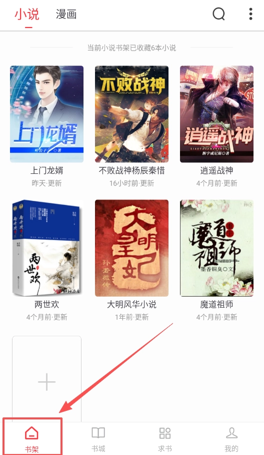看到感兴趣的书,点击即可阅读,收藏后会自动添加到“书架”。在书架中能清楚查看书籍的更新情况,便于追更。