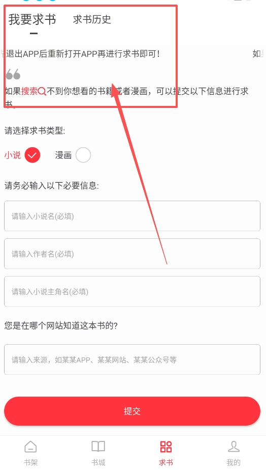 软件还贴心配备了“求书”功能,要是你有特别想找却找不到的书,不妨在这里试着求助一下。