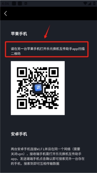 如果选择接收,只需用另一台手机扫描弹出的二维码并发送对应数据,即可完成操作。