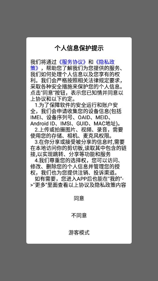安装软件后打开,点击同意个人信息保护提示。