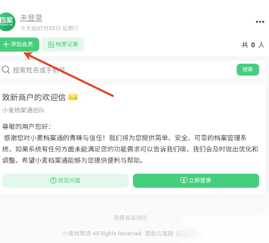 用户进入首页后,点击“添加会员”按钮,系统就会快速跳转至会员页面。