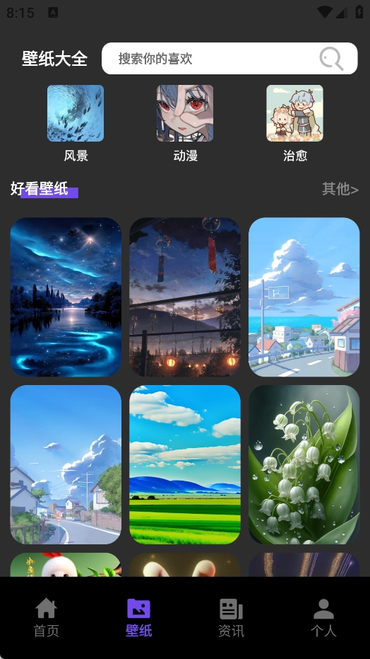 2、壁纸库内收录了大量精美壁纸,用户可随时在线取用。