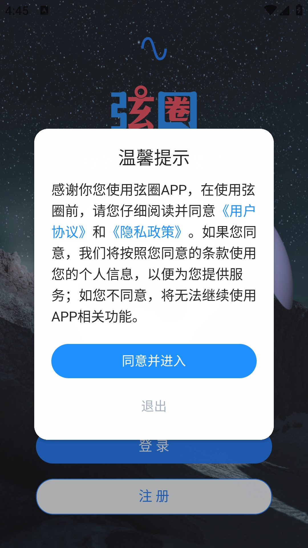 1、把软件安装好后打开,点击同意并进入,就能进入软件的登录界面;