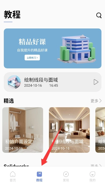 2、您可以在教程页面浏览各类设计教学内容,挑选需要学习的课程章节并点击进入观看。