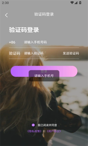 2、弹出界面后,选择手机号登录选项,获取验证码并输入,点击登录按钮即可进入软件。