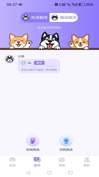 录制宠物叫声,上传秒速得出最精准的翻译结果。