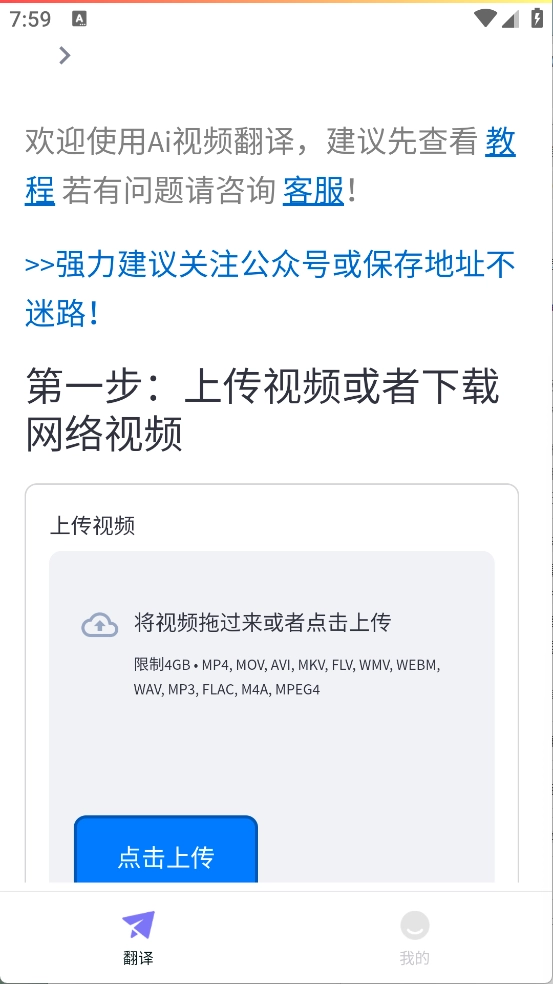 在翻译功能里上传本地视频或添加网络视频链接,接着点击上传按钮,就能快速完成翻译操作。