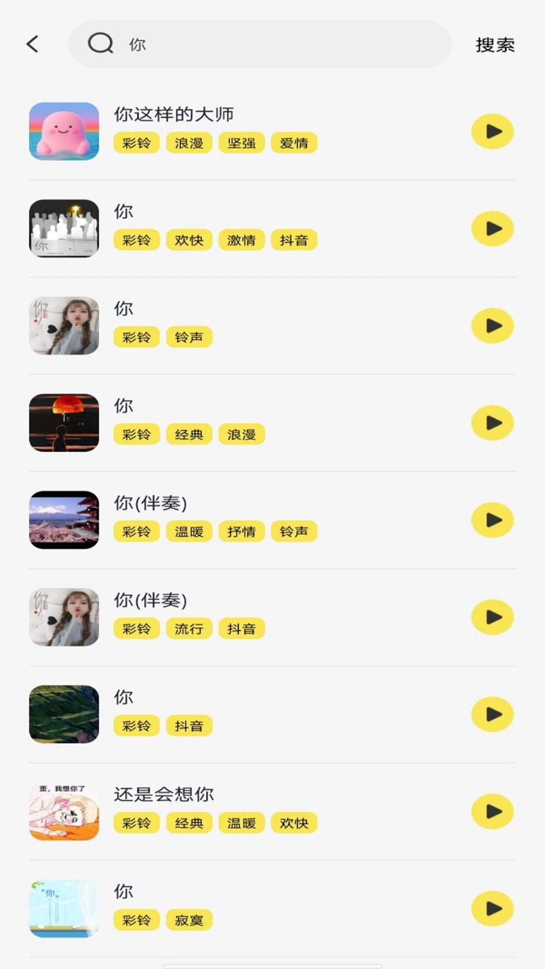 1、应用内收录了大量风格多样的铃声,包含流行音乐、经典旋律、自然音效等不同类型。