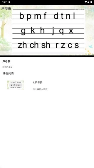 点击声母表后,我们可以借助视频进行跟读练习,这样能帮助你熟悉基础发音,扎实掌握相关知识。