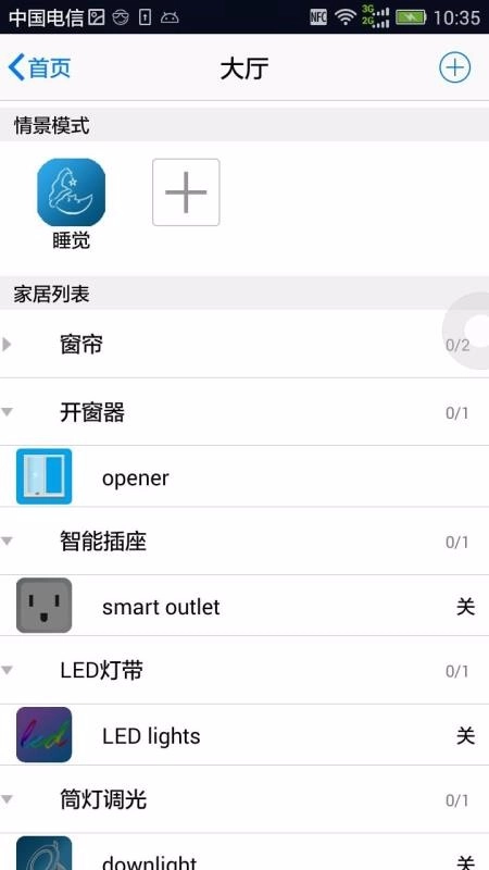 家居分类列表:依据设备的属性划分为多个不同板块,便于用户能够迅速查找和使用。
