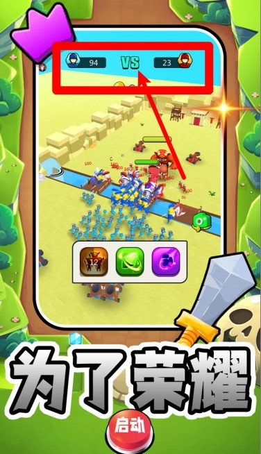 2. 蓝红两方的单位数量会在顶部界面展示,可实时查看双方战斗人数的差距;当己方占据优势时,要记得保持压制态势并提升进攻节奏。