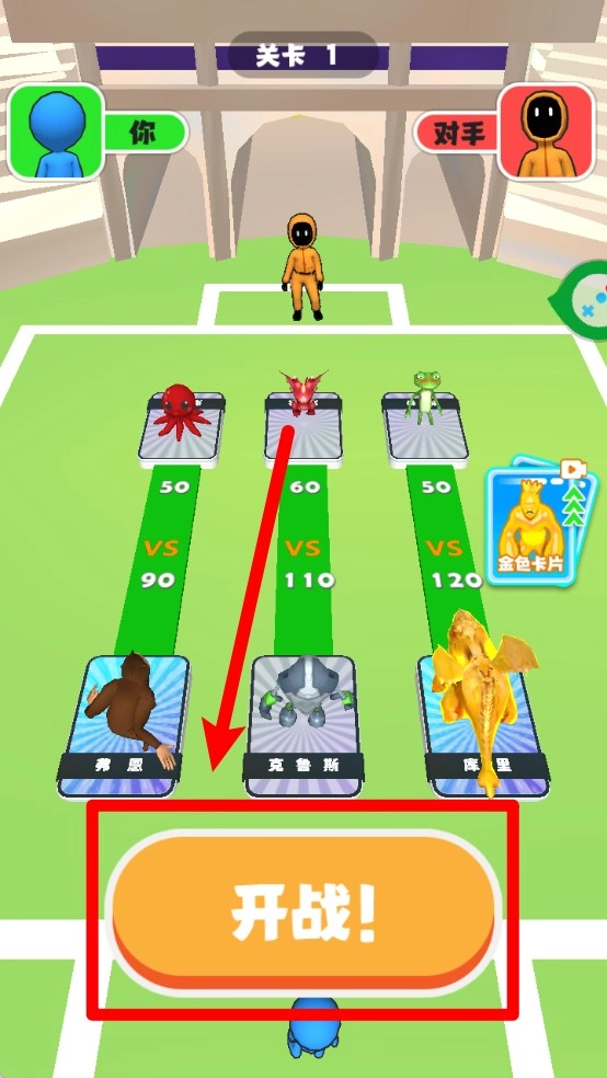 3.点击开始战斗按钮后,玩家可选择强力角色上阵迎战对手,战斗数值一目了然。