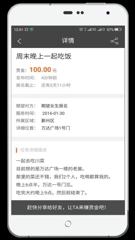 一键点击分享,就能将赏金任务分享给其他的人;
