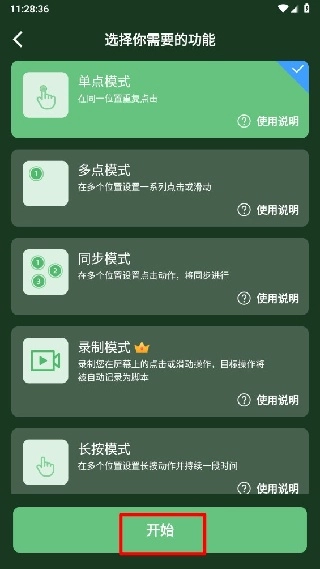根据自身需求选择不同的点击模式,确定后点击“开始”按钮。