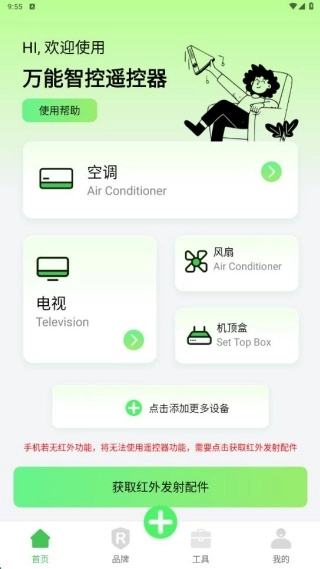 空调遥控器万连是一款免费使用的手机遥控软件,能快速适配多种家电产品。通过简单设置,它就能与不同品牌的家电搭配使用,不仅能保证遥控效果,还完全不用担心闪退问题。此外,它还具备远程开关家电的功能,让你外出时无需担心忘记关空调而造成电量浪费。