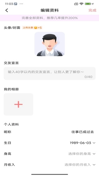 可以随时编辑个人的图像,填写个人信息;