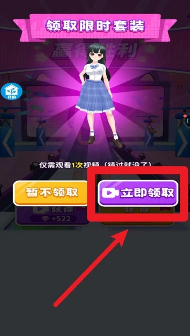 完成搭配挑战后可领取限时套装奖励,只需点击“立即领取”并观看视频,就能解锁独特服饰,可别错过哦。