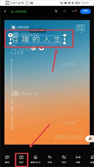 若需修改文字或添加文字,可直接点击目标文字进行编辑,也能通过点击下方菜单栏来更换文字内容,同时还可以对字体、样式、颜色以及排版等进行调整,使海报呈现出更美观的效果。