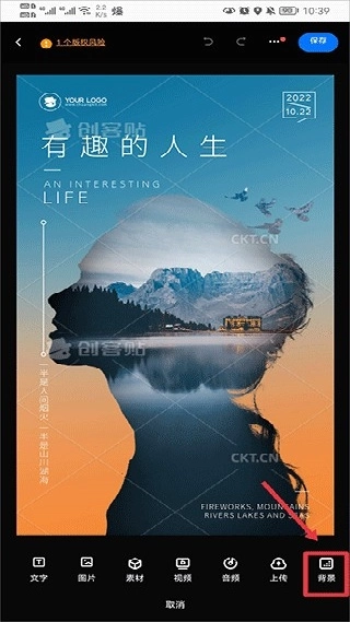 要是觉得背景不够美观,先点击右下角的“添加”按钮,向右滑动后找到并点击“背景”选项,选择一个合适的背景就可以了。