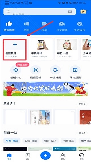 要是想自定义模板,可以先在首页点击创建设计,接着自定义尺寸,之后点击创建,就能开始设计自己喜欢的模板了。
