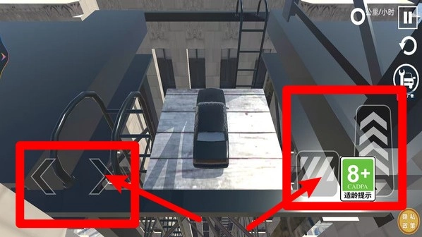 2.左右控制按键:点击画面两侧按键可控制车辆左右移动,保持车辆平衡并避免从狭窄平台跌落。