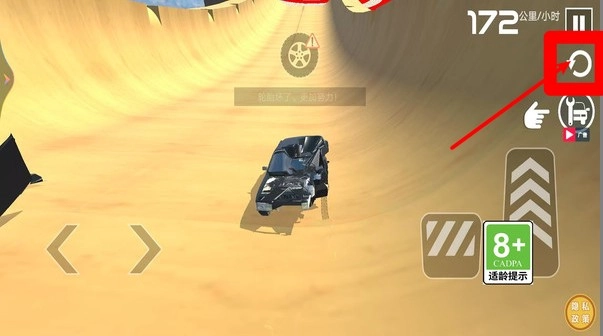 3.使用重置功能:若车辆卡住或翻覆无法继续前进,可点击右侧方向图标进行重置,快速恢复状态。