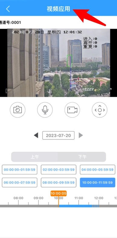 5.在视频应用中可查看实时监控画面,支持录像回放、截图、语音通话及调取指定时间段影像。