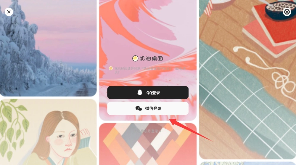 2、在登录页面可选择微信、QQ快捷登录或手机号验证登录,点击相应图标完成授权。
