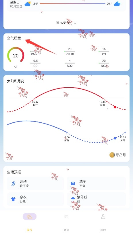 4、生活场景服务周到贴心,除了常规的各类指数外,还创新推出“花事指数”来为园艺活动提供专业指导,以及“摄影指数”来推荐最佳的取景拍摄时段,充分满足了不同用户的细分需求。