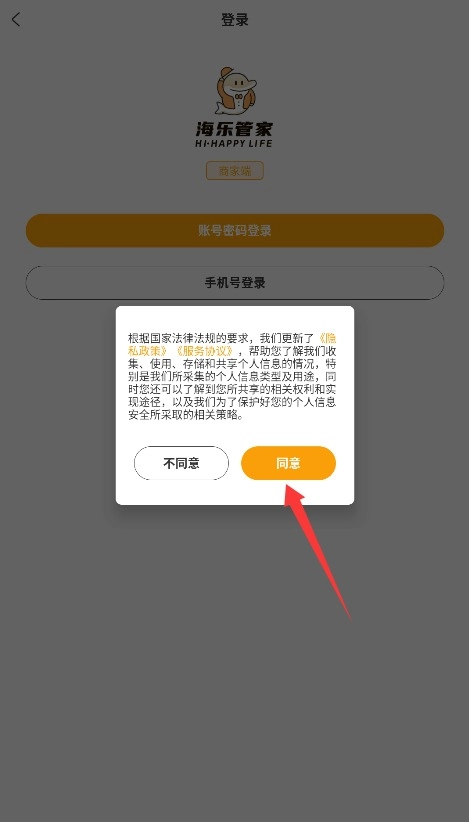 1、首次使用时,需仔细阅读平台的服务条款和隐私政策,确认无误后点击同意按钮,即可进入应用。