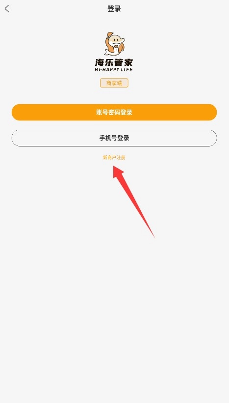 2、于登录页面找到“新商户注册”的入口,点击该入口后,页面会跳转至商户注册信息的填写界面。