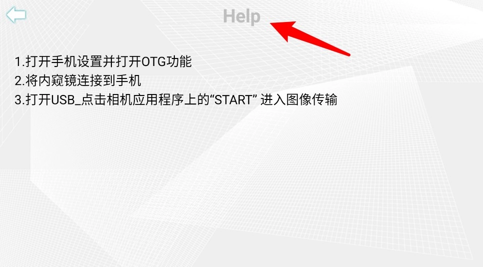 3.帮助界面详细列出操作步骤,包括开启OTG功能和连接内窥镜,便于快速上手。
