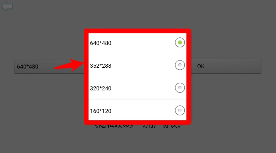 4.在设置中可自定义分辨率,支持640*480、352*288等多种清晰度画面切换选项。
