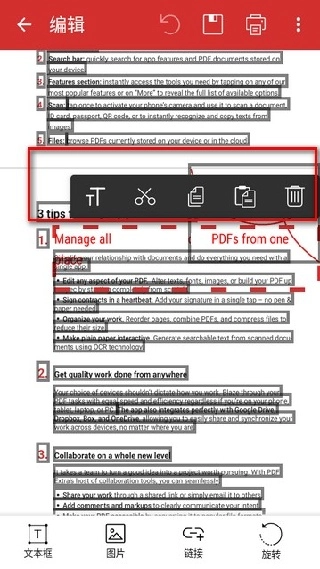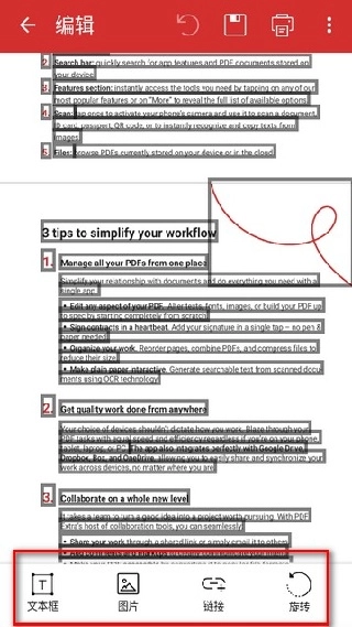 可以直接对PDF里的文字和图像进行编辑,还能添加文本框、链接或者图片,也能够调整页面的旋转角度。